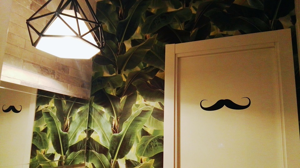 Los cuartos de baño tienen los lavabos como zona común y las cabinas se distinguen con esta chulada hecha por Esther Romero