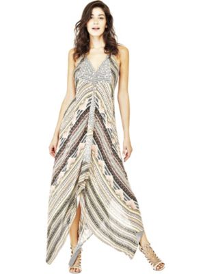 En segundo lugar, la medalla de plata es en esta ocasión para otro vestido de Guess que abraza las tendencias étnicas y asimétricas: