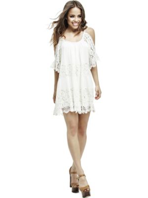 En primer lugar, para la medalla de bronce, hemos elegido el VESTIDO DE ENCAJE HOMBROS AL AIRE de Guess Festival por su versatilidad a la hora d adaptarse a distintos estilos.