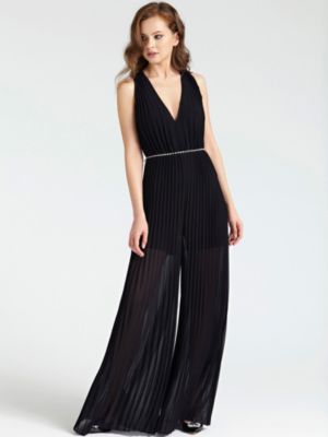 Los monos llegaron arrasando y hoy en día siguen cautivando para los grandes eventos. Para arrancar este Top de favoritos de las novedades de Guess, he elegido este Mono de tejido plisado con pantalón de elefante y escote en V («uve») descarado para cerrar un outfit que trae una nota de luz con un fino cinturón de pedrería.